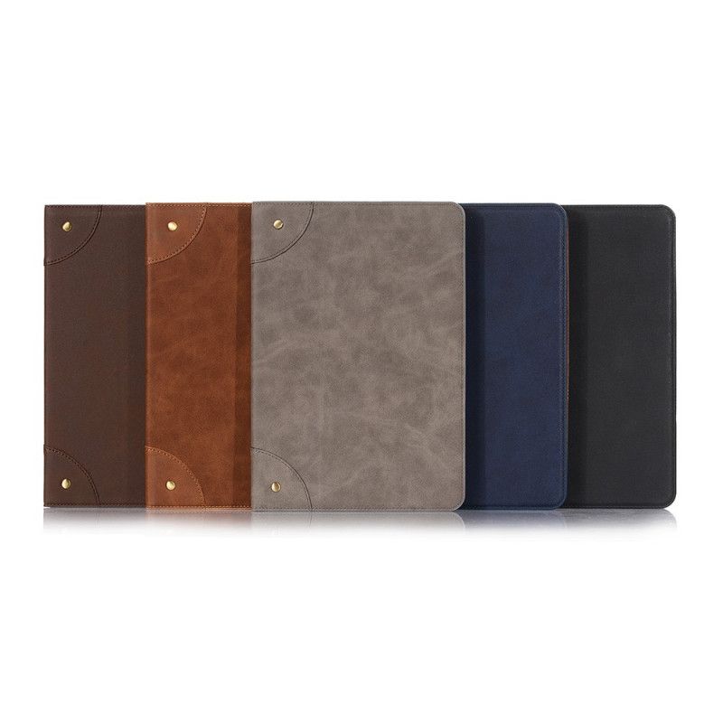 Det vintage konstläderfodralet med nitar erbjuder en unik version som ett skydd för din Samsung Galaxy Tab S7 Plus-surfplatta.