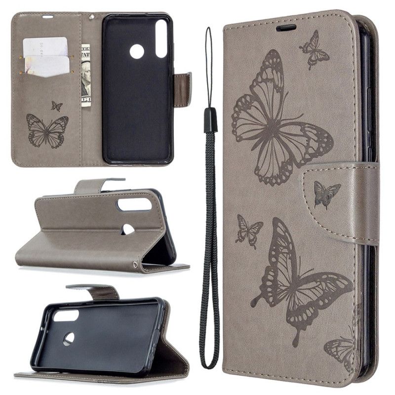 Fodral för Huawei Y6p Grå Fjärilar Och Sneda Klaff
