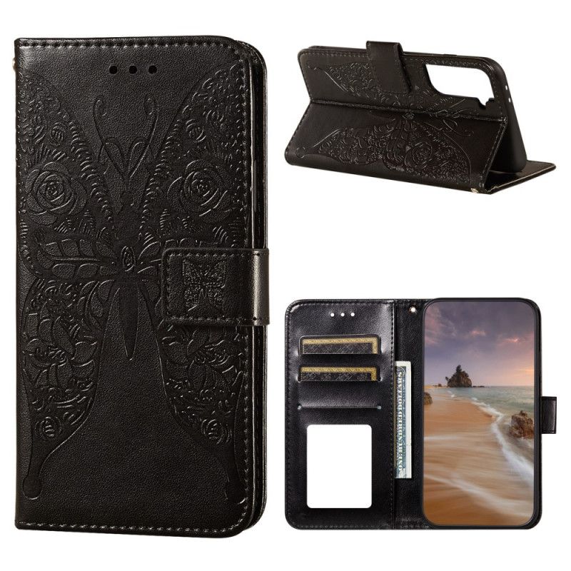 Fodral för Samsung Galaxy S21 Plus 5G Svart Fjärilar Blommönster