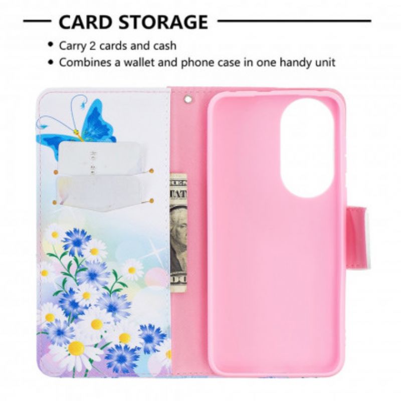 Fodral Huawei P50 Målade Fjärilar Och Blommor