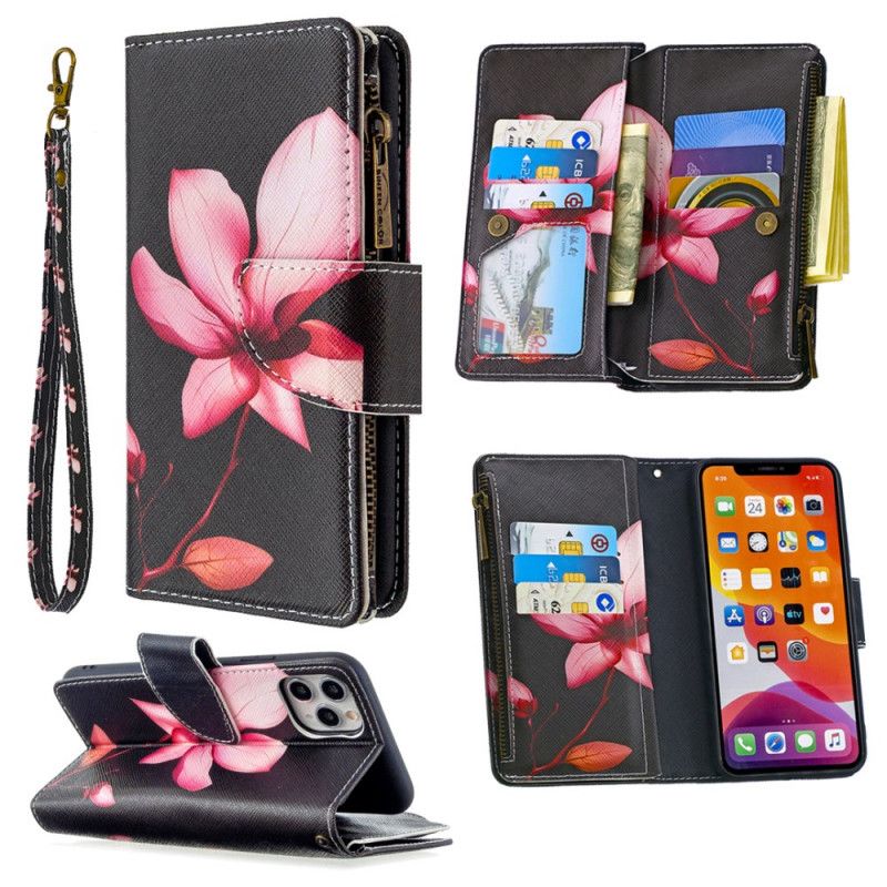 Fodral iPhone 11 Pro Max Svart Blomma Med Blixtlås