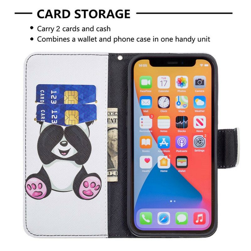 En rolig panda på ett plånboksskydd för att skydda din iPhone 13 Pro Max med talang.