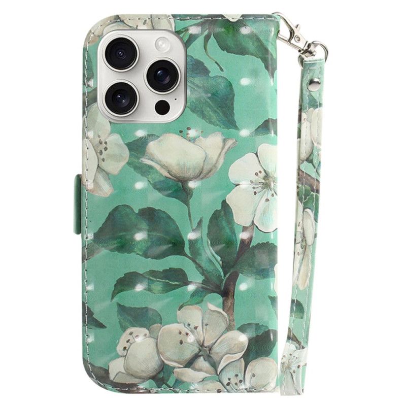 Fodral iPhone 16 Pro Max Akvarellblommor Med Rem