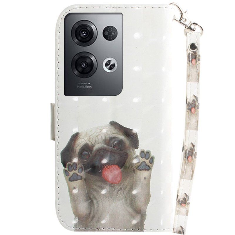 Genom Att Installera Detta Fodral Med Rem, Dekorerad Med Hans Mops, Skyddar Du Din Oppo Reno 8 Pro Medan Du Använder Den Som Plånbok.