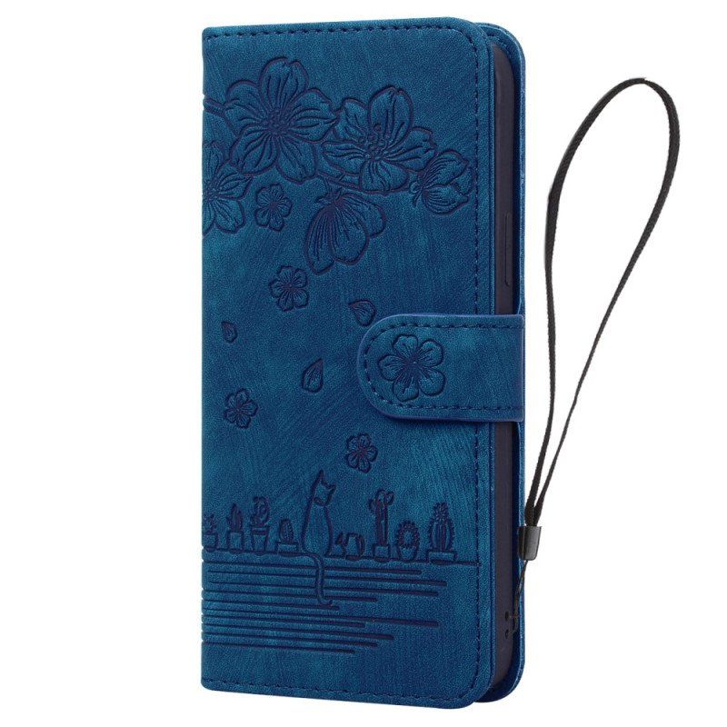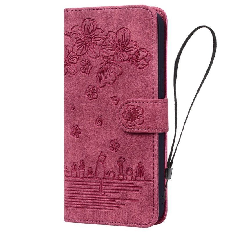 Cat Floral-Fodralet Med Snodd Garanterar Säkerheten För Din Samsung Galaxy A54 5G Samtidigt Som Det Fungerar Som En Plånbok.