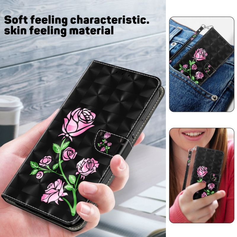 Fodral Samsung Galaxy A55 5g Rosa Blommor På Svart Bakgrund Med Rem