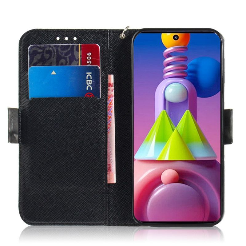 Fodral Samsung Galaxy M51 Grå Katt Med Rem