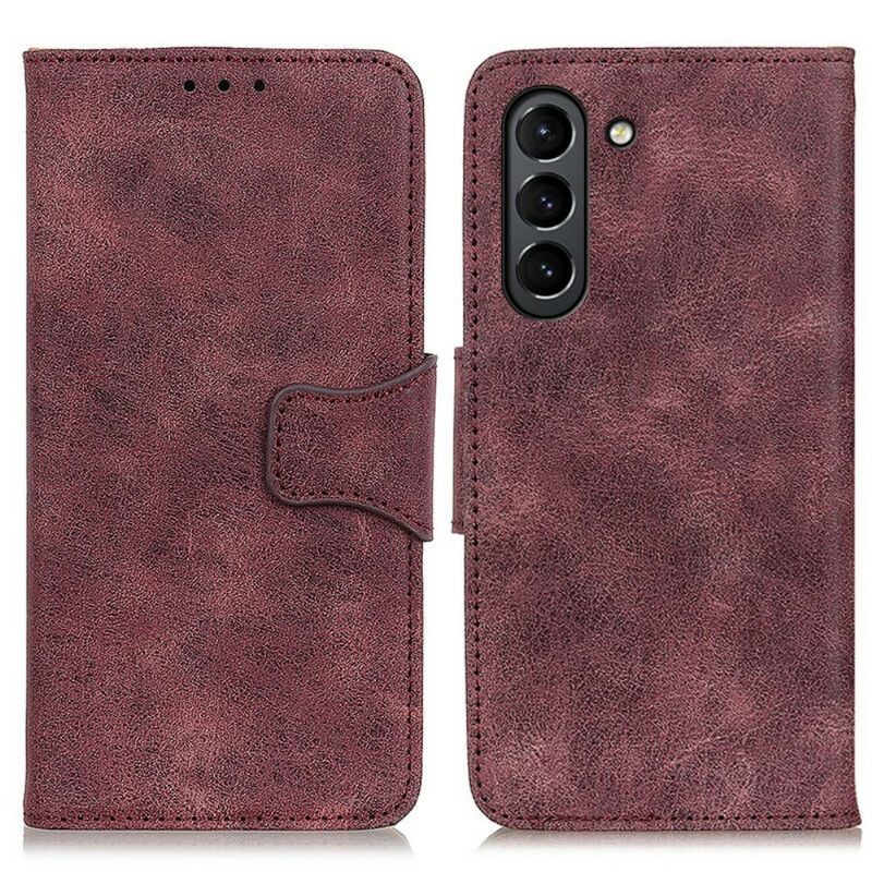 Din Samsung Galaxy S21 FE ser bra ut när den är säkrad med detta vintage läderfodral med en dubbelsidig magnetisk flik.