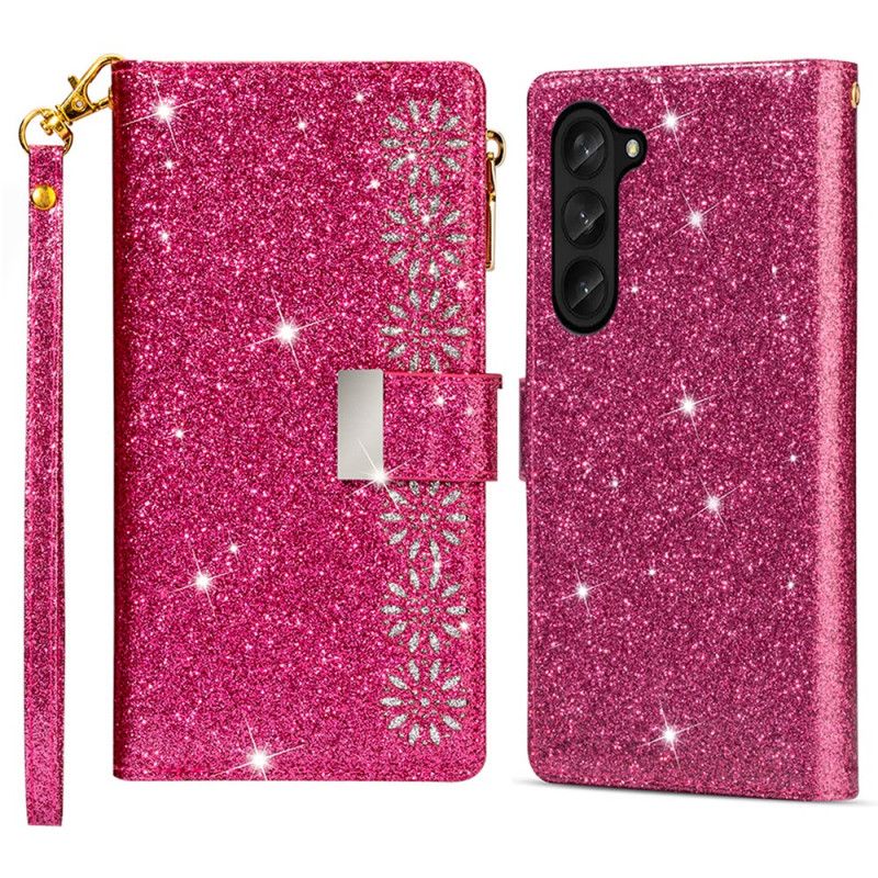 Välj Detta Glitterfodral Med Hel Plånbok Som Optimalt Och Praktiskt Säkrar Din Samsung Galaxy Z Fold 5.