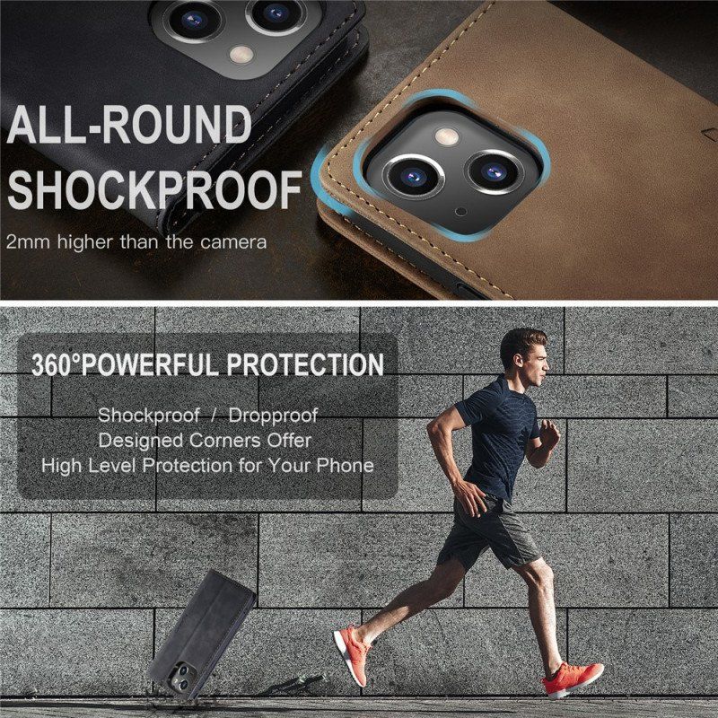 Folio-fodral iPhone 15 Läderfodral Vintage Konstläder Caseme