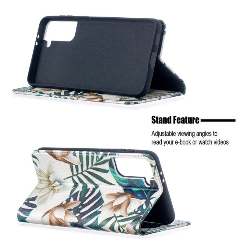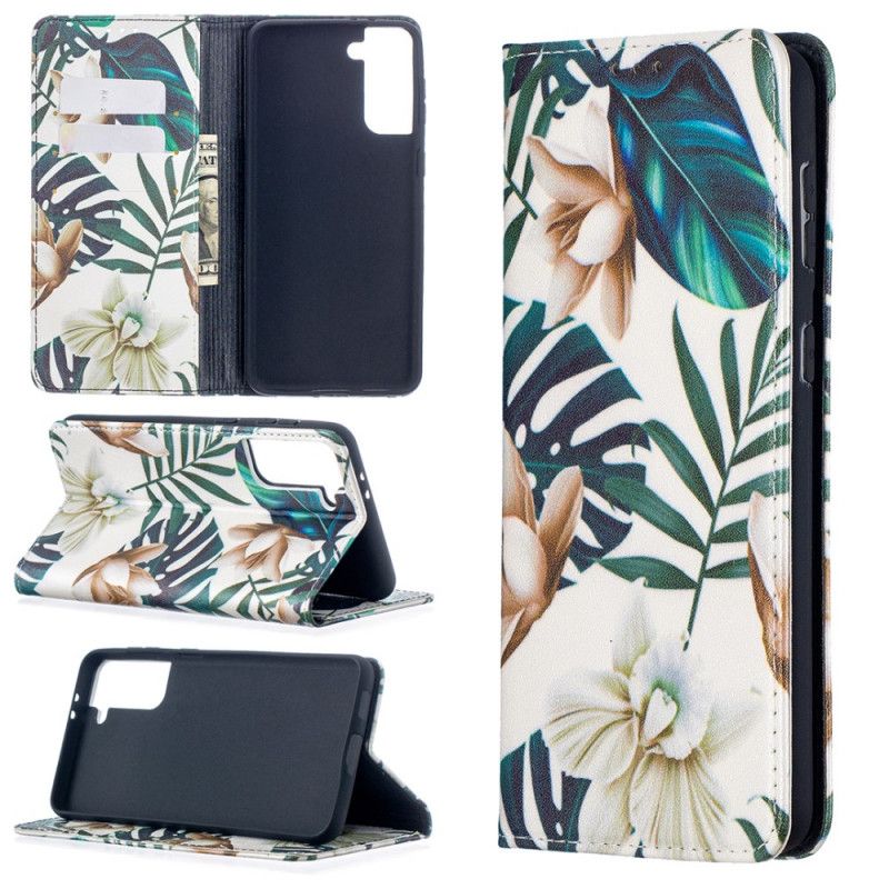 Flip Cover Leaves, med lås integrerat i locket, är perfekt för att skydda Samsung Galaxy S21 Plus 5G på ett multifunktionellt sätt.