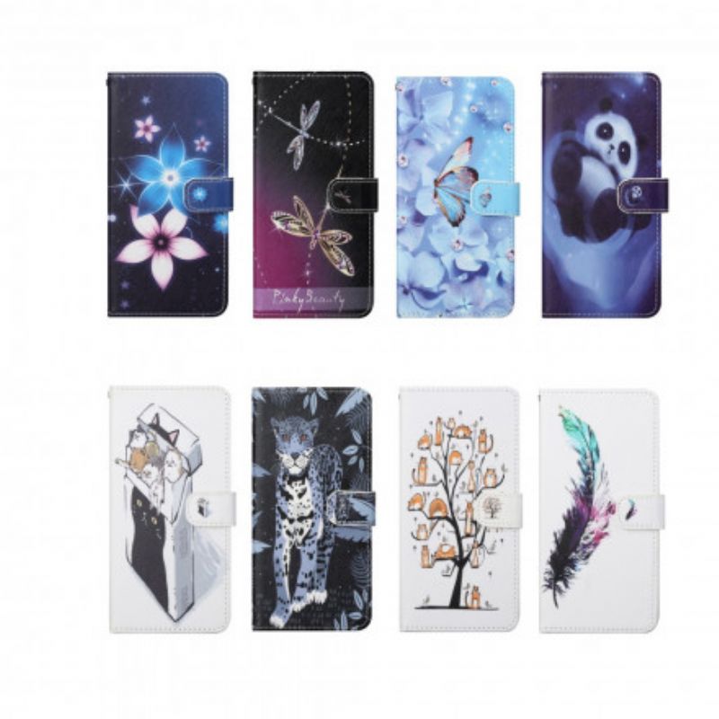 Läderfodral Motorola Edge 20 Telefonfodral Diamond Strappy Butterflies