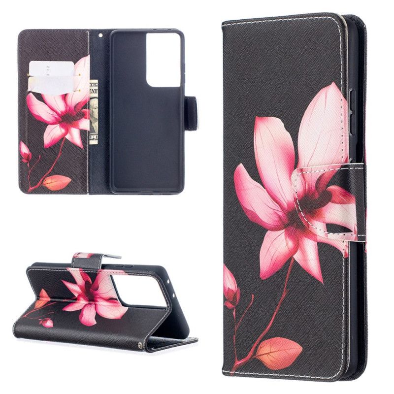 Läderfodral Samsung Galaxy S21 Ultra 5G Mobilskal Rosa Blomma