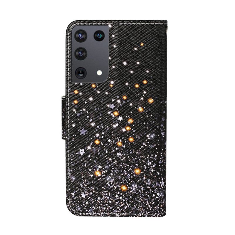 Läderfodral Samsung Galaxy S21 Ultra 5G Mobilskal Stjärnor Och Paljetter Med Rem
