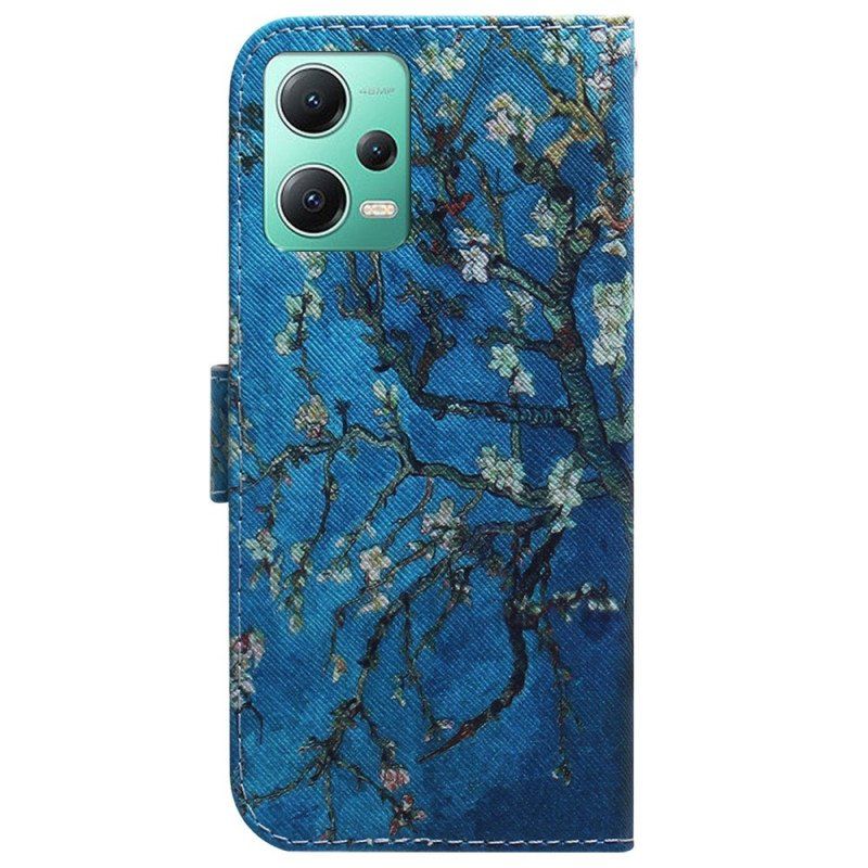 Painting Branches-Fodralet Skyddar Effektivt Xiaomi Redmi Note 125G/Poco X5 5G Samtidigt Som Det Är En Plånbok.
