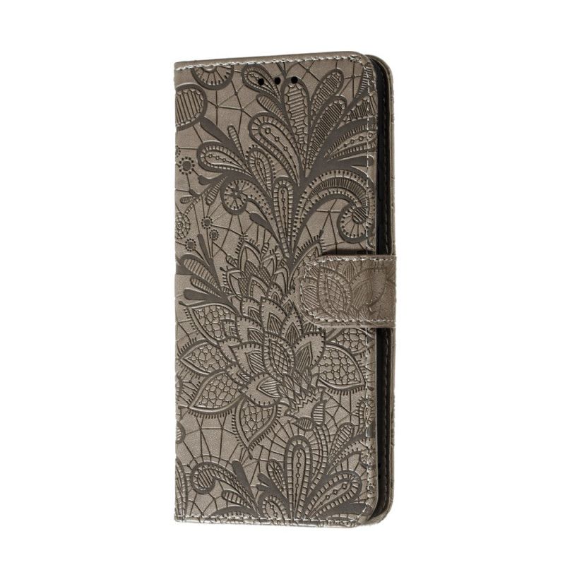 Läderfodral Xiaomi Redmi Note 8T Grå Mobilskal Tribal Thong Blommor