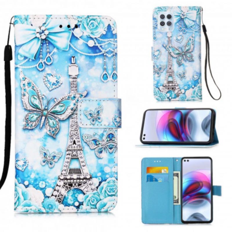 Läderskal Fodral Moto G100 Eiffeltornet Butterflies Strap