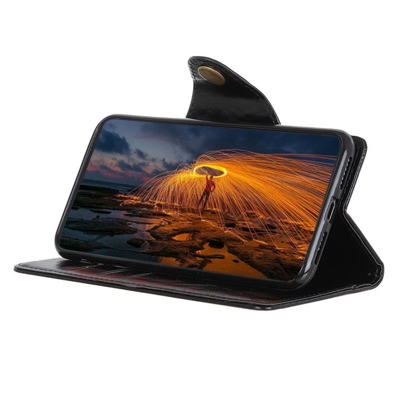 Läderskal Samsung Galaxy A10s Svart Glänsande Konstläderknapp