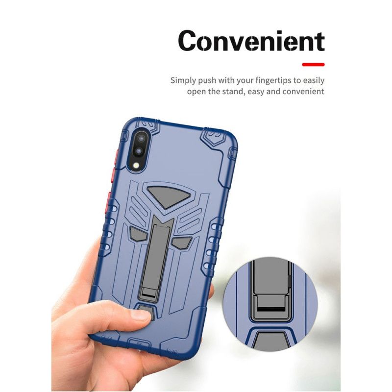 Ett ultra skal, i form av en sköld med en praktisk kickstand, skyddar din Samsung Galaxy A10 mot fall och stötar.