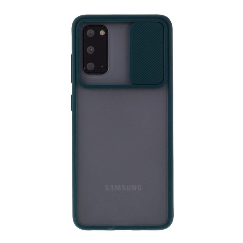 Det genomskinliga CamShield-skalet med frostat effekt är perfekt för Samsung Galaxy S20 och den är utrustad med ett skjutbart fotomodulskydd.