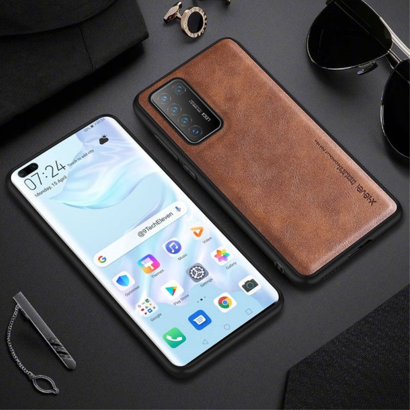 Premium Vintage imiterat läderskal från X-Level-märket är både elegant och tunt. Det är ett skräddarsydd skydd för Huawei P40 Pro.