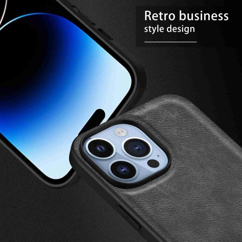 Detta Retrofodral I Konstläder Skyddar Baksidan Och Kanterna På Din Iphone 14 Pro Max Perfekt.