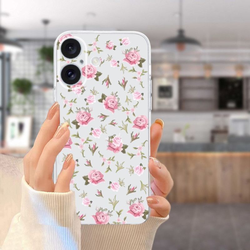 Upptäck Vårt Skyddsfodral För Iphone 16 Plus, Dekorerat Med Ett Vackert Rosa Blommönster.