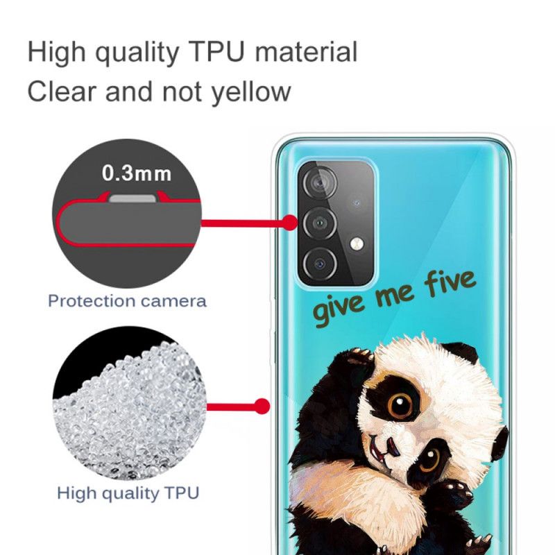 Transparent Panda Give Me Five-fodralet skyddar Samsung Galaxy A32 5G säkert och ger det ett personligt utseende. Br>Tillverkad av avancerad flexibel silikon, det skyddar baksidan, kanterna och linsen mot risker samtidigt som det ger lätt åtkomst till portarna.