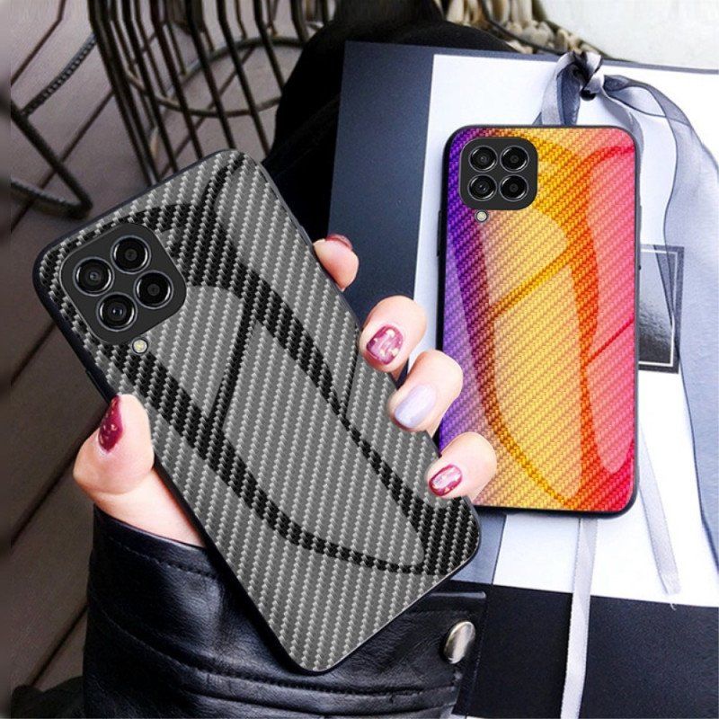 Utnyttja Detta Suveräna Härdat Glasfodral Med Kolfiberdesign För Att Skydda Din Samsung Galaxy M33 5G På Ett Personligt Sätt.