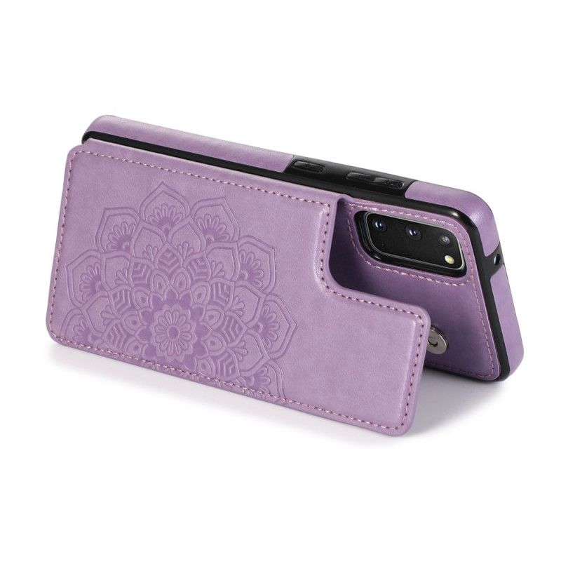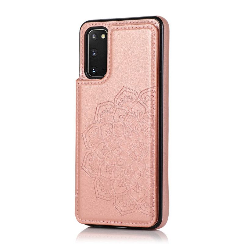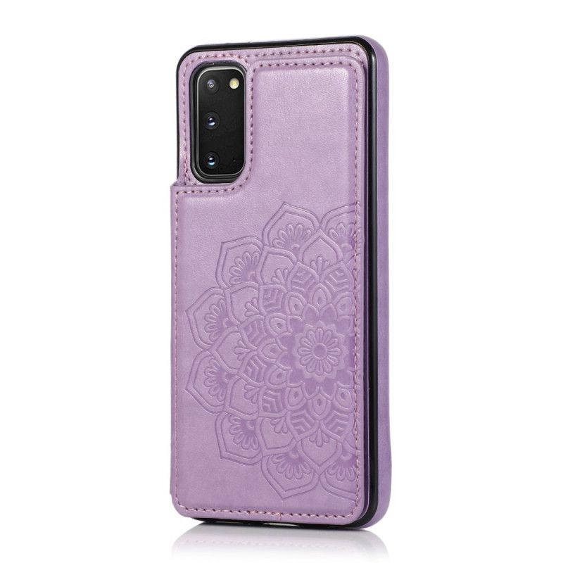 din Samsung Galaxy S20 är multifunktionellt skyddad med detta Mandala Print imiterat läderskal utrustat med en korthållare som fungerar som stöd.