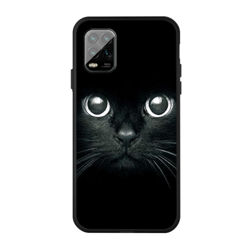 Ett skal för Xiaomi Mi 10 Lite med det fantastiska utseendet på en storögd svart katt.
