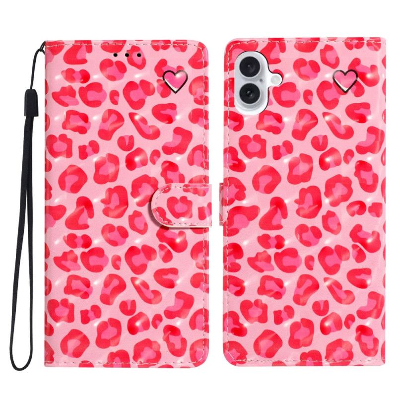 Skyddsfodral iPhone 16 Plus Rosa Leopardtryck Med Rem